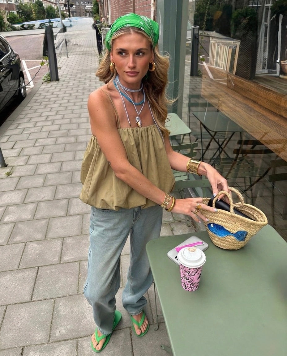 Top bombacho verde olivo
