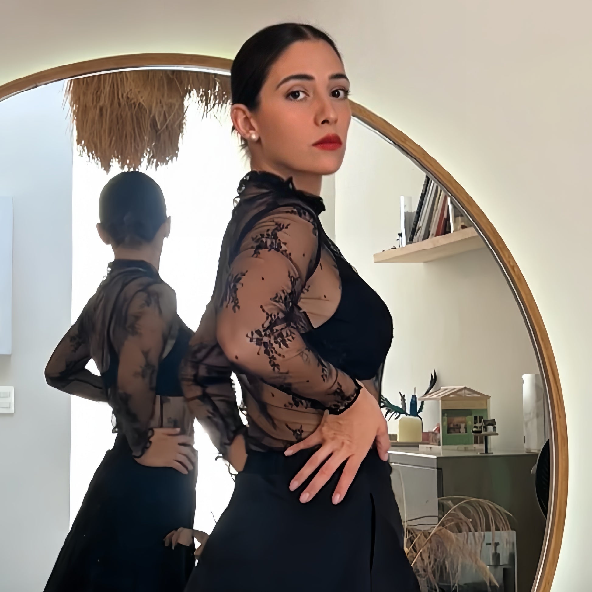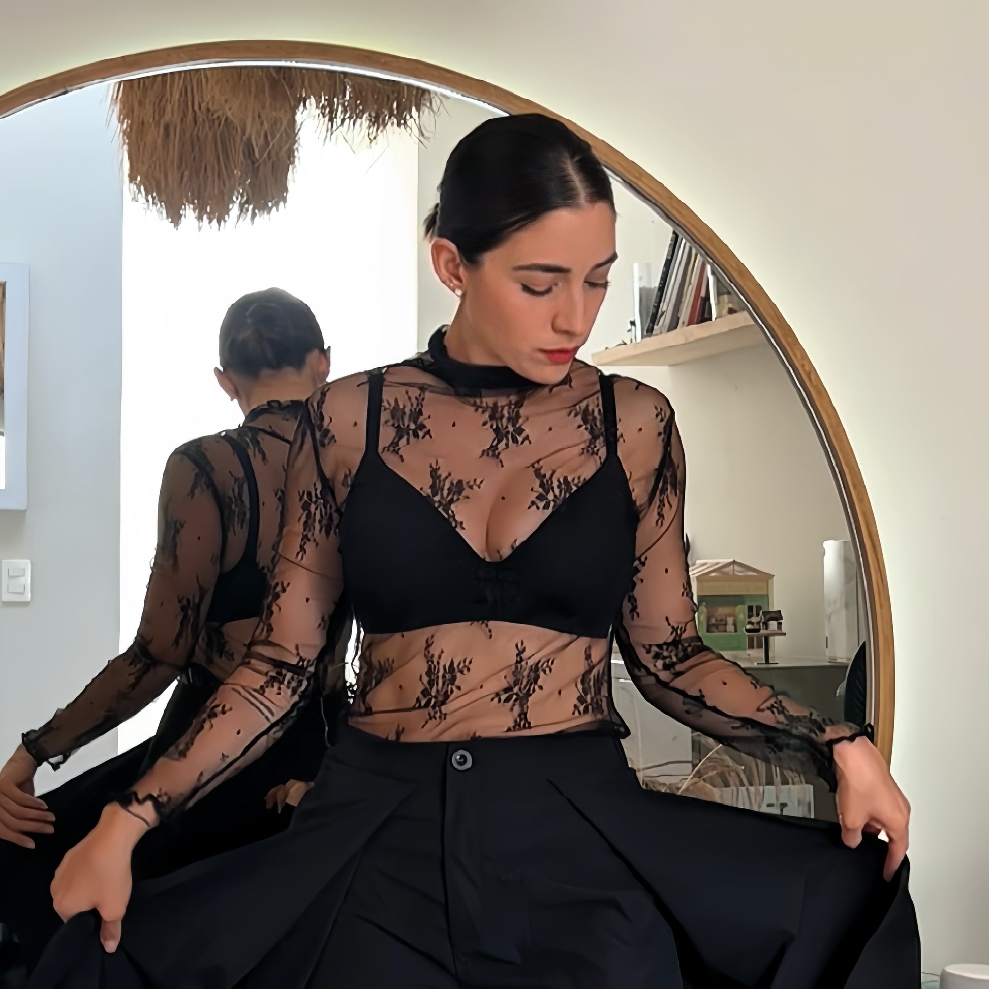 Top negro de encaje semitransparente